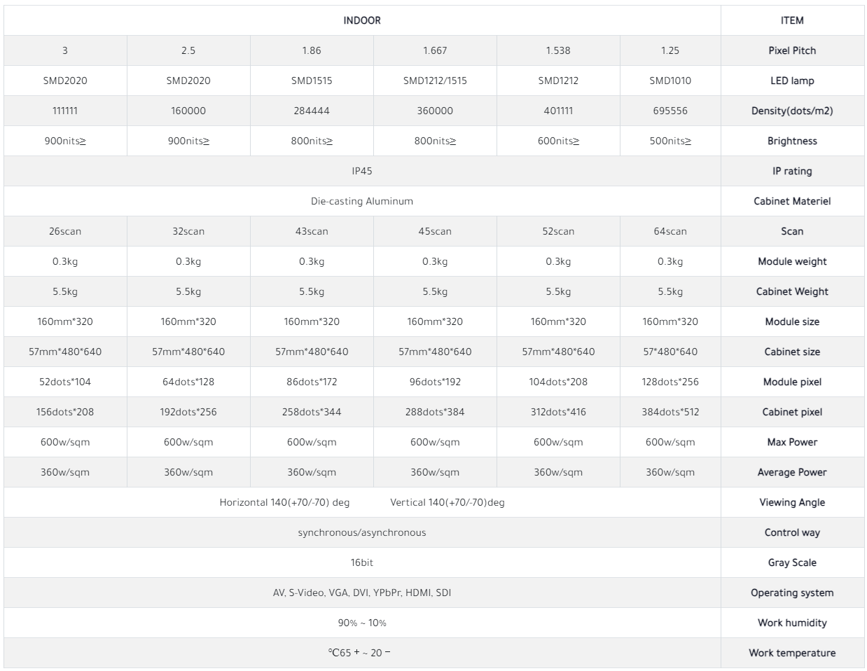 - متوفرة بمقاسات بكسل مختلفة: P1.2، P1.5، P1.6، P1.8، P2.0، P2.5